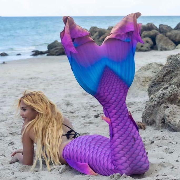 **Please take care when using your mermaid tail! Pebble Tec pools, pool decks, rocks and rough surfaces can damage the print and/or fabric. Cape Cali cannot be responsible for tails that have holes or rips due to misuse**