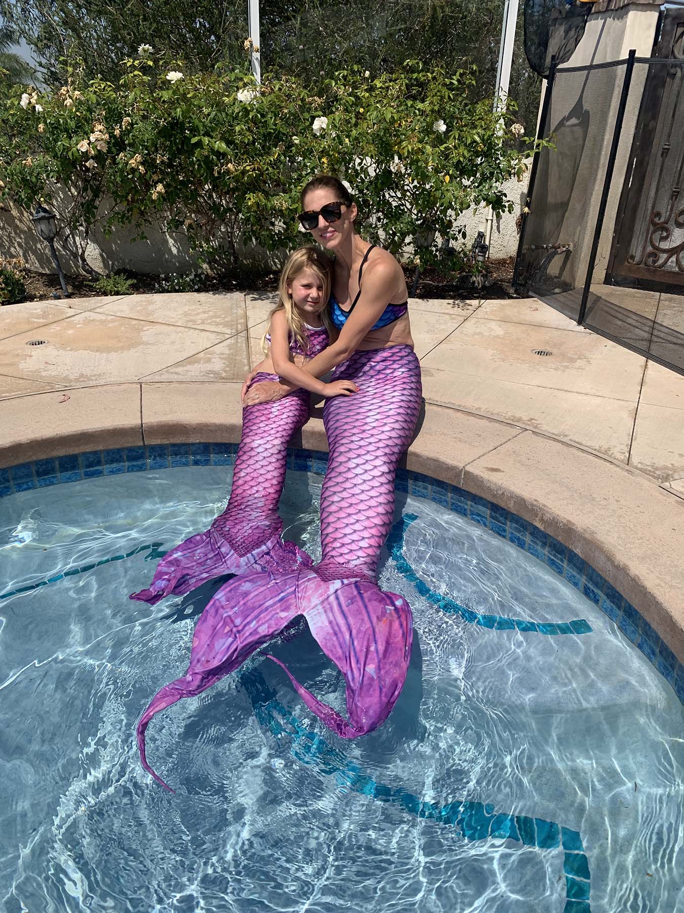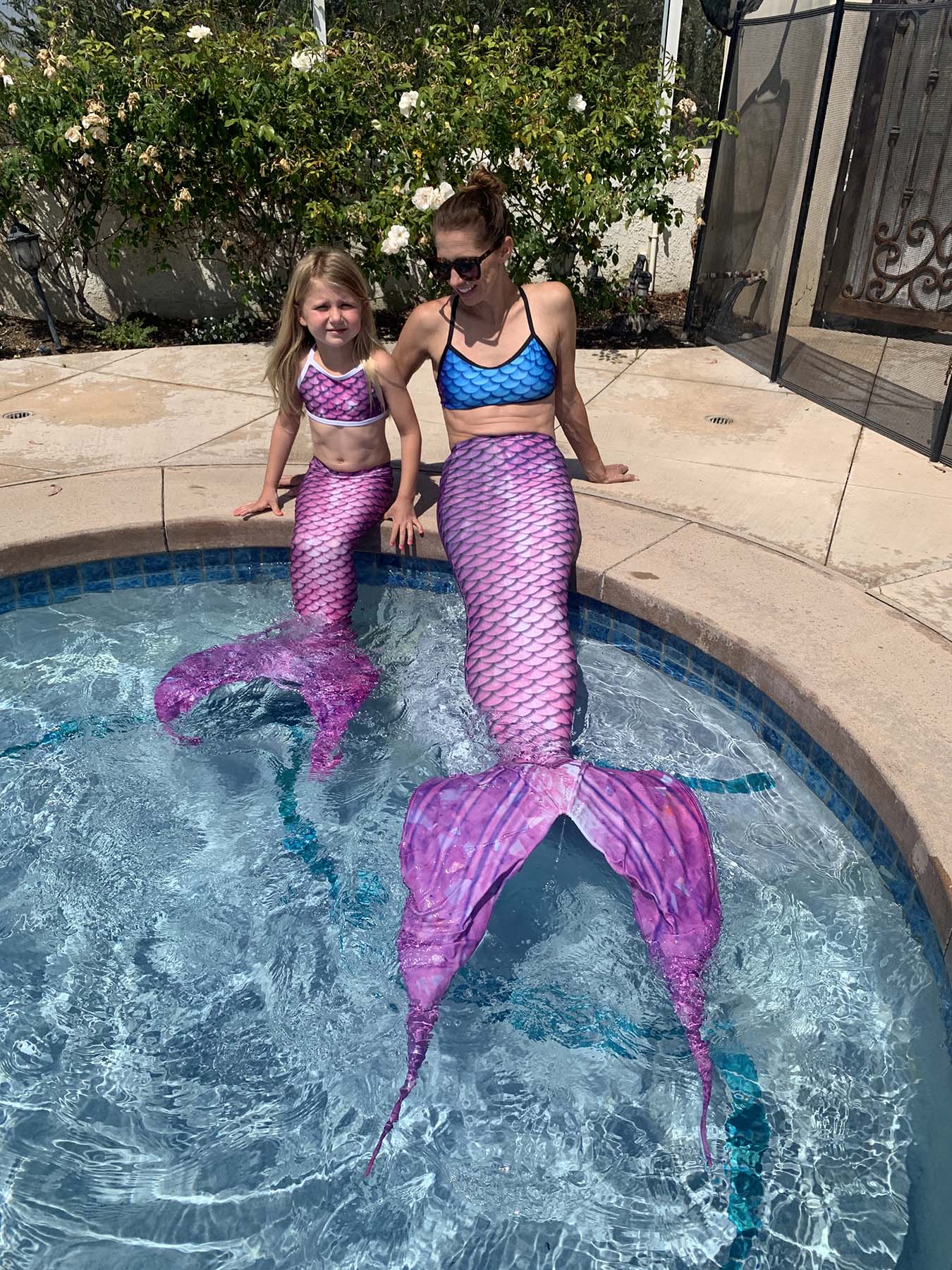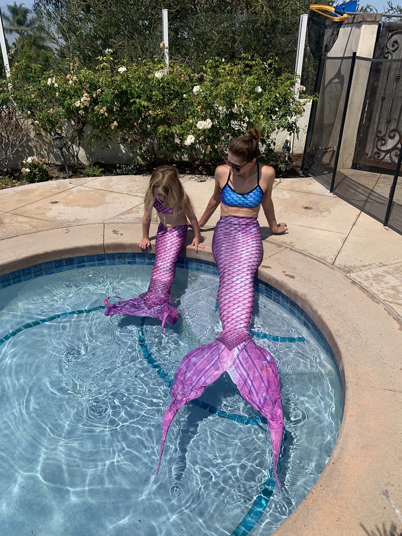 **Please take care when using your mermaid tail! Pebble Tec pools, pool decks, rocks and rough surfaces can damage the print and/or fabric. Cape Cali cannot be responsible for tails that have holes or rips due to misuse**