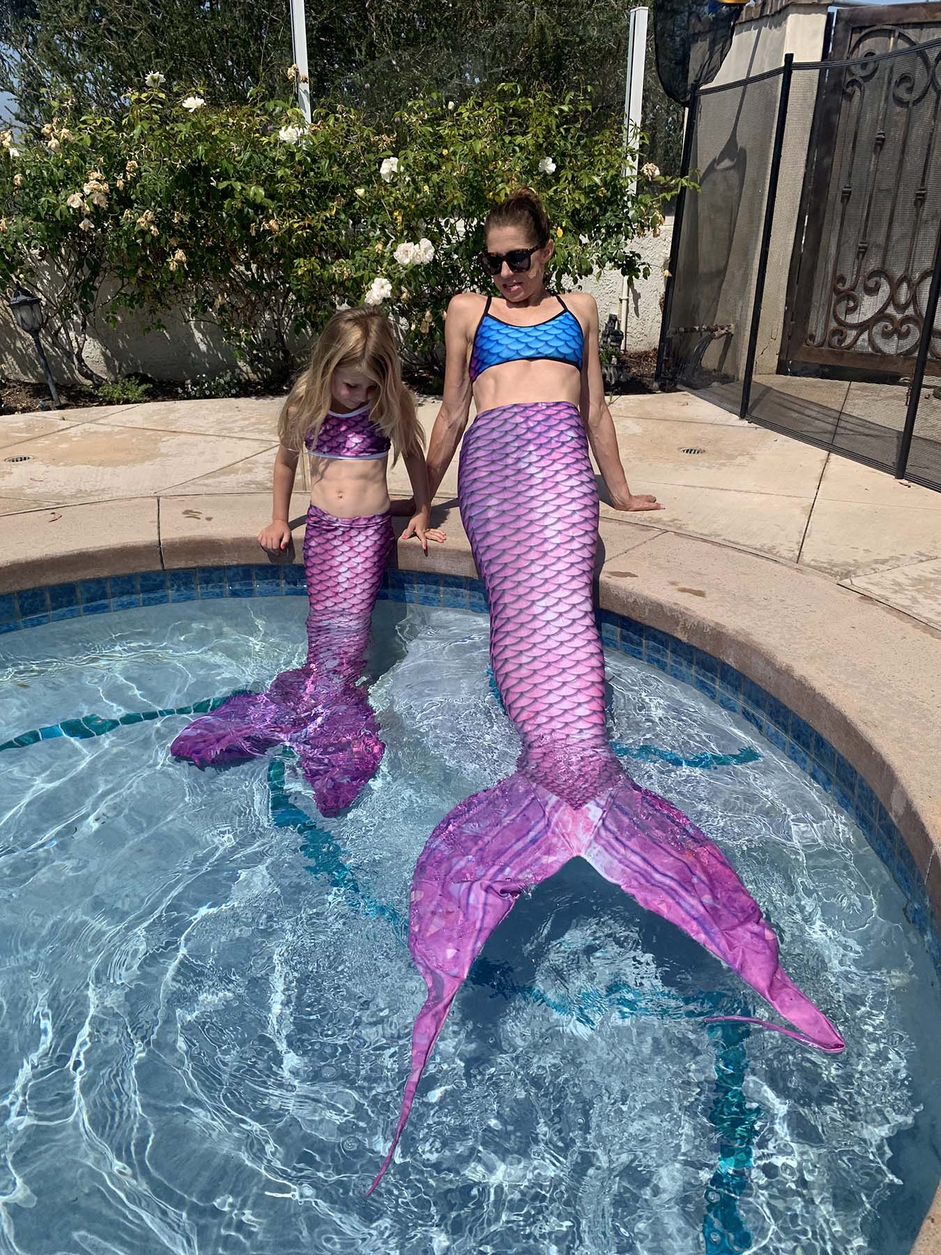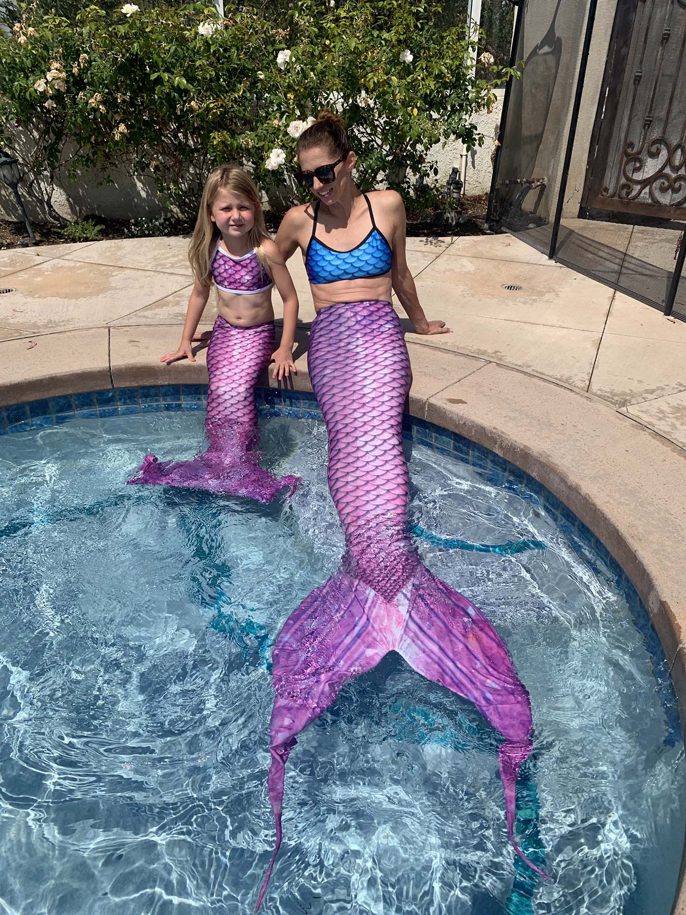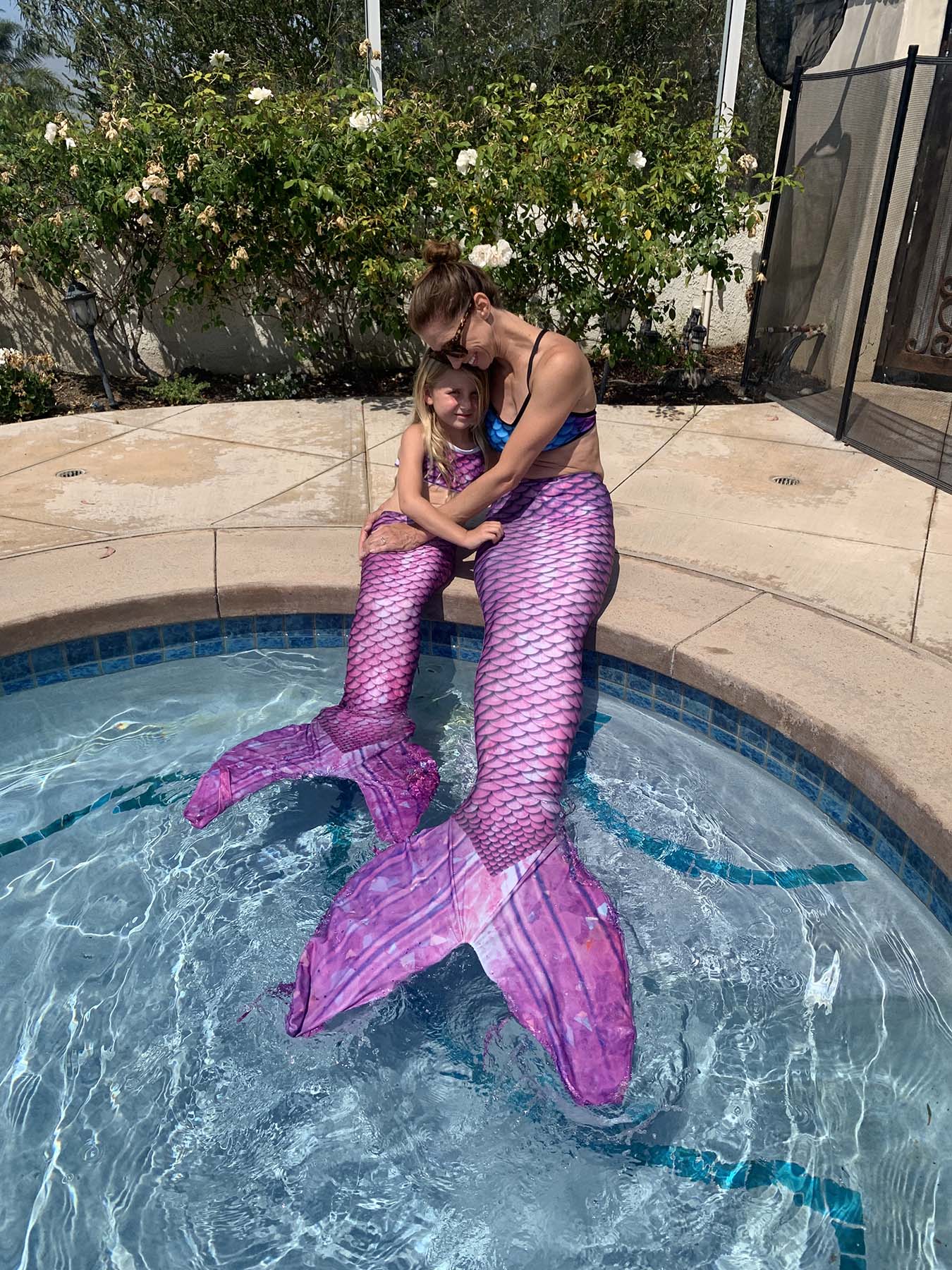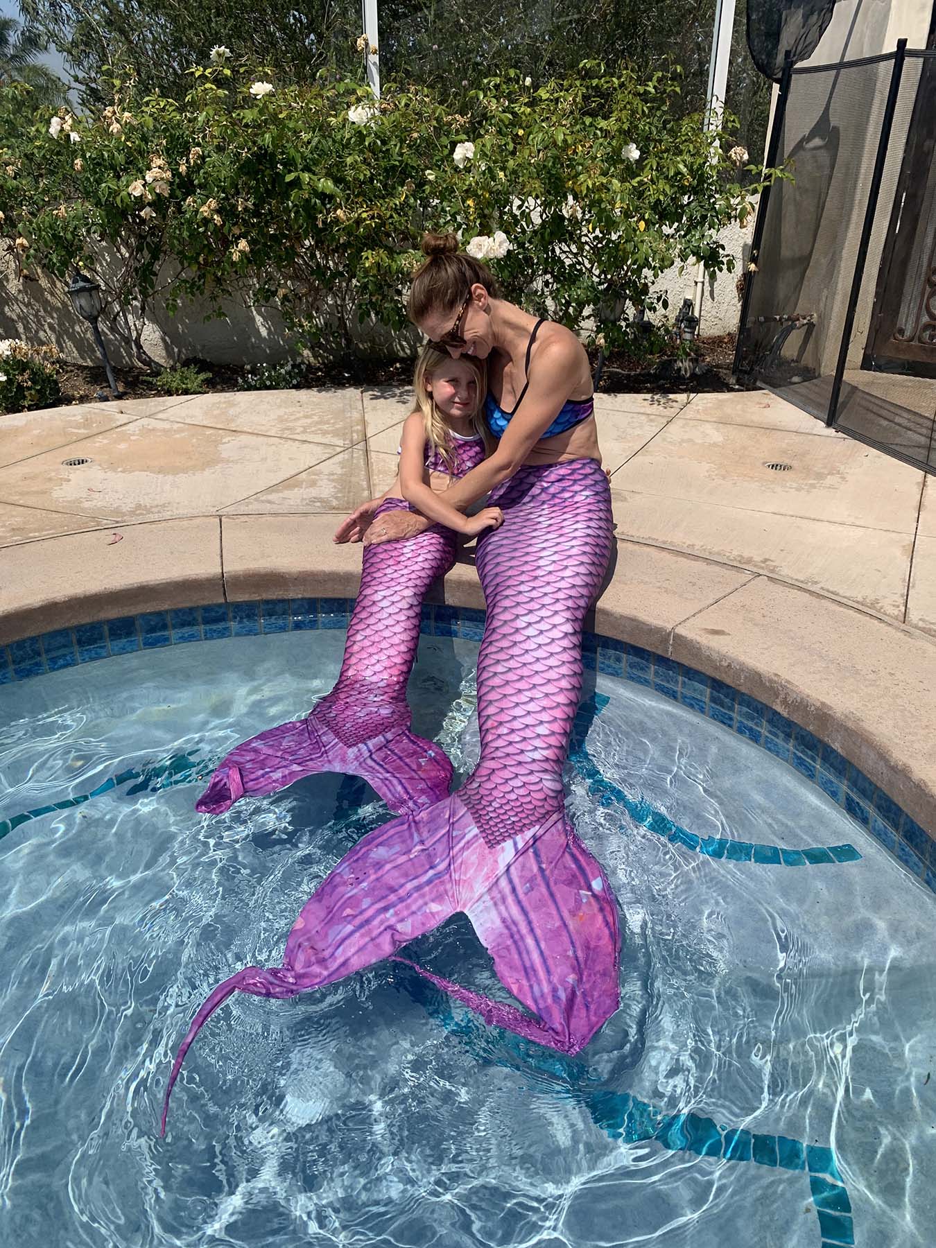 **Please take care when using your mermaid tail! Pebble Tec pools, pool decks, rocks and rough surfaces can damage the print and/or fabric. Cape Cali cannot be responsible for tails that have holes or rips due to misuse**