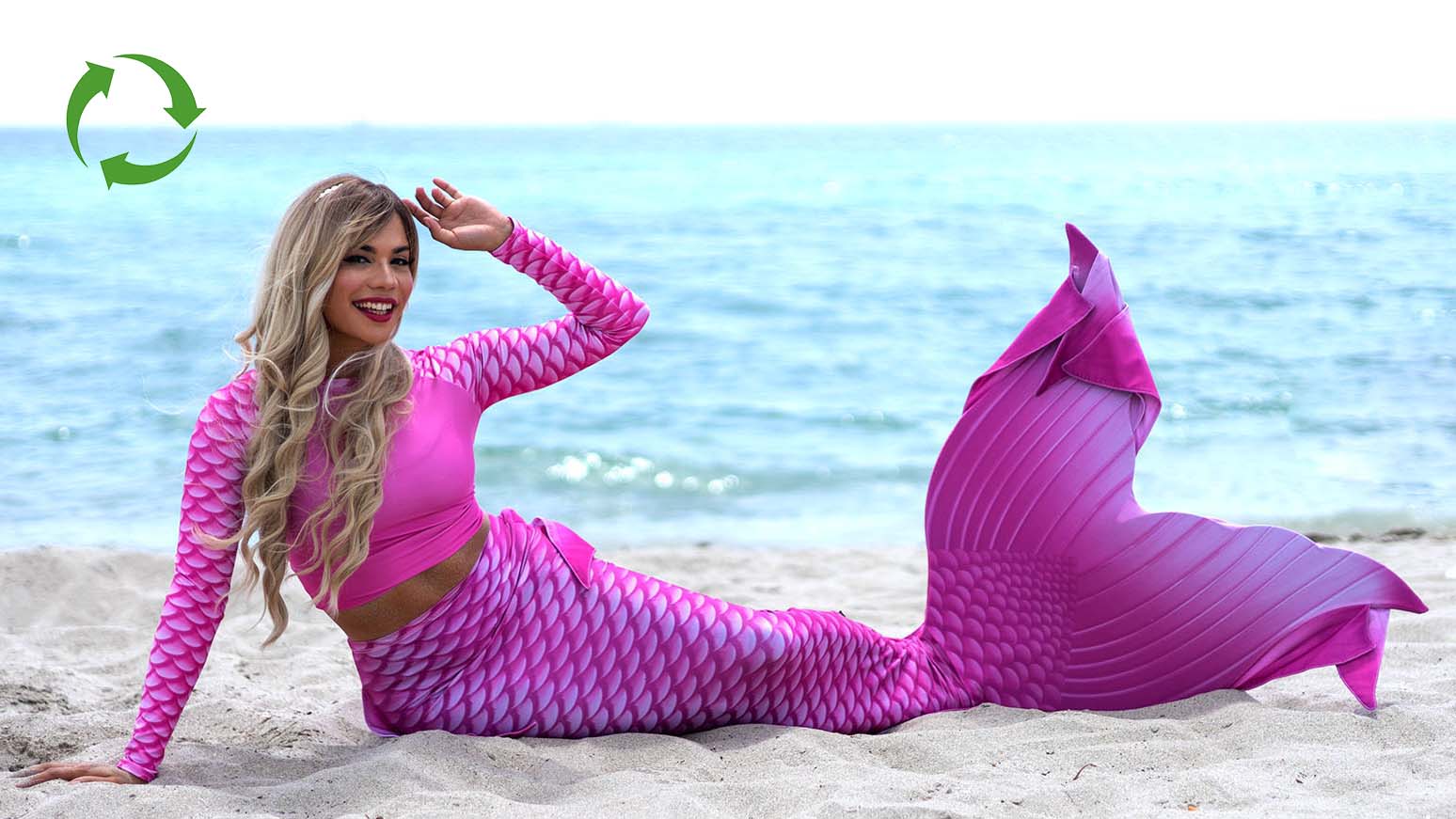 Made from certified recycled polyester, our Eco-Mermaid Tails and Swimwear reduce carbon emissions on land and help keep plastic pollution from reaching the oceans.