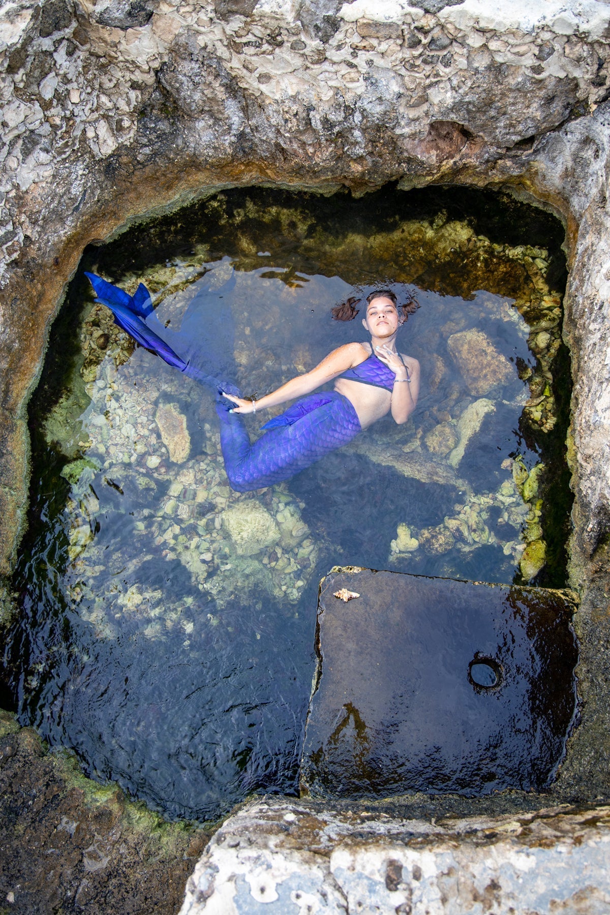 **Please take care when using your mermaid tail! Pebble Tec pools, pool decks, rocks and rough surfaces can damage the print and/or fabric. Cape Cali cannot be responsible for tails that have holes or rips due to misuse**
