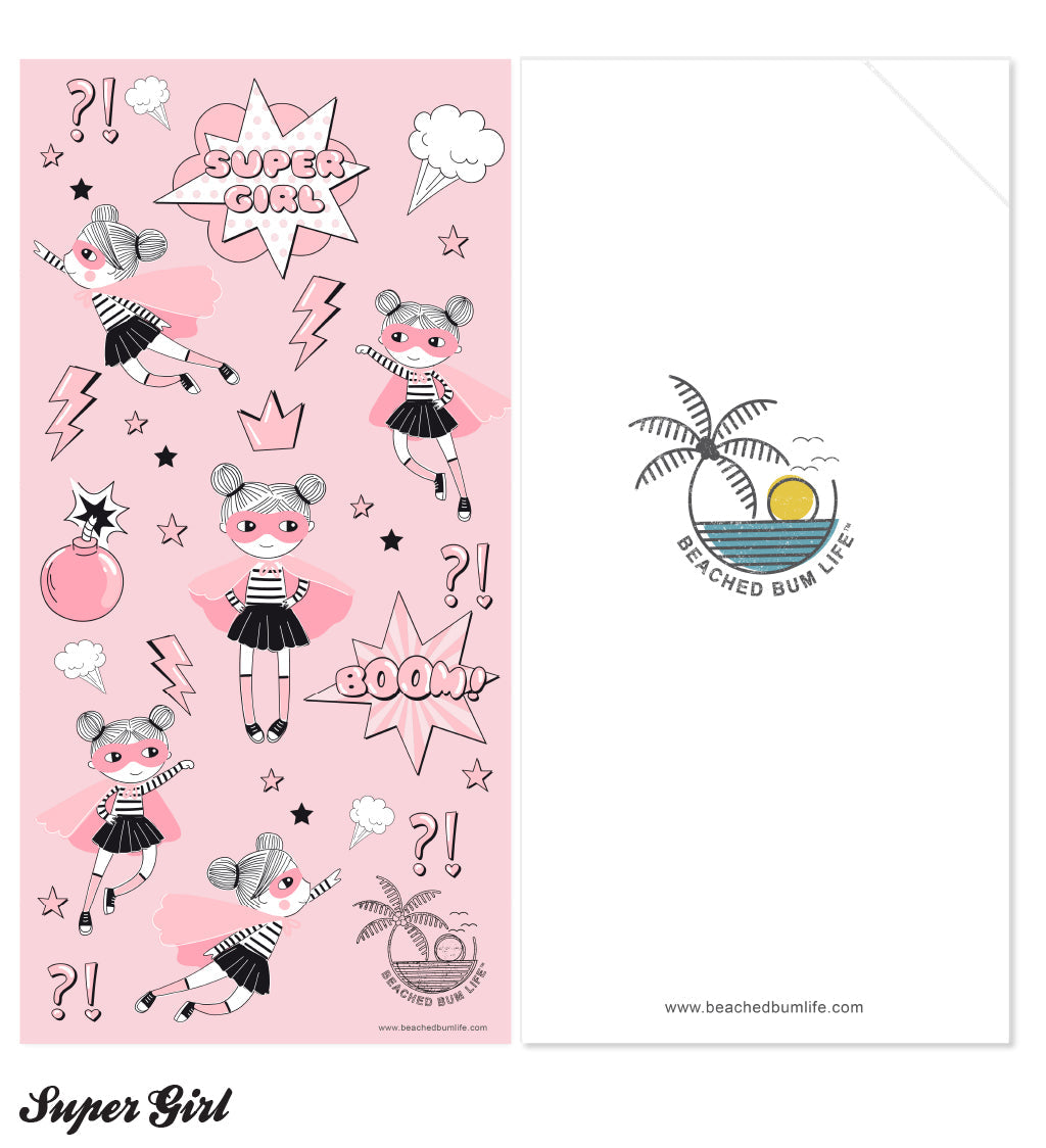 For all the beautiful little girls with super powers, our new Super Girl Beached Bum Towel with hidden Zipper pocket