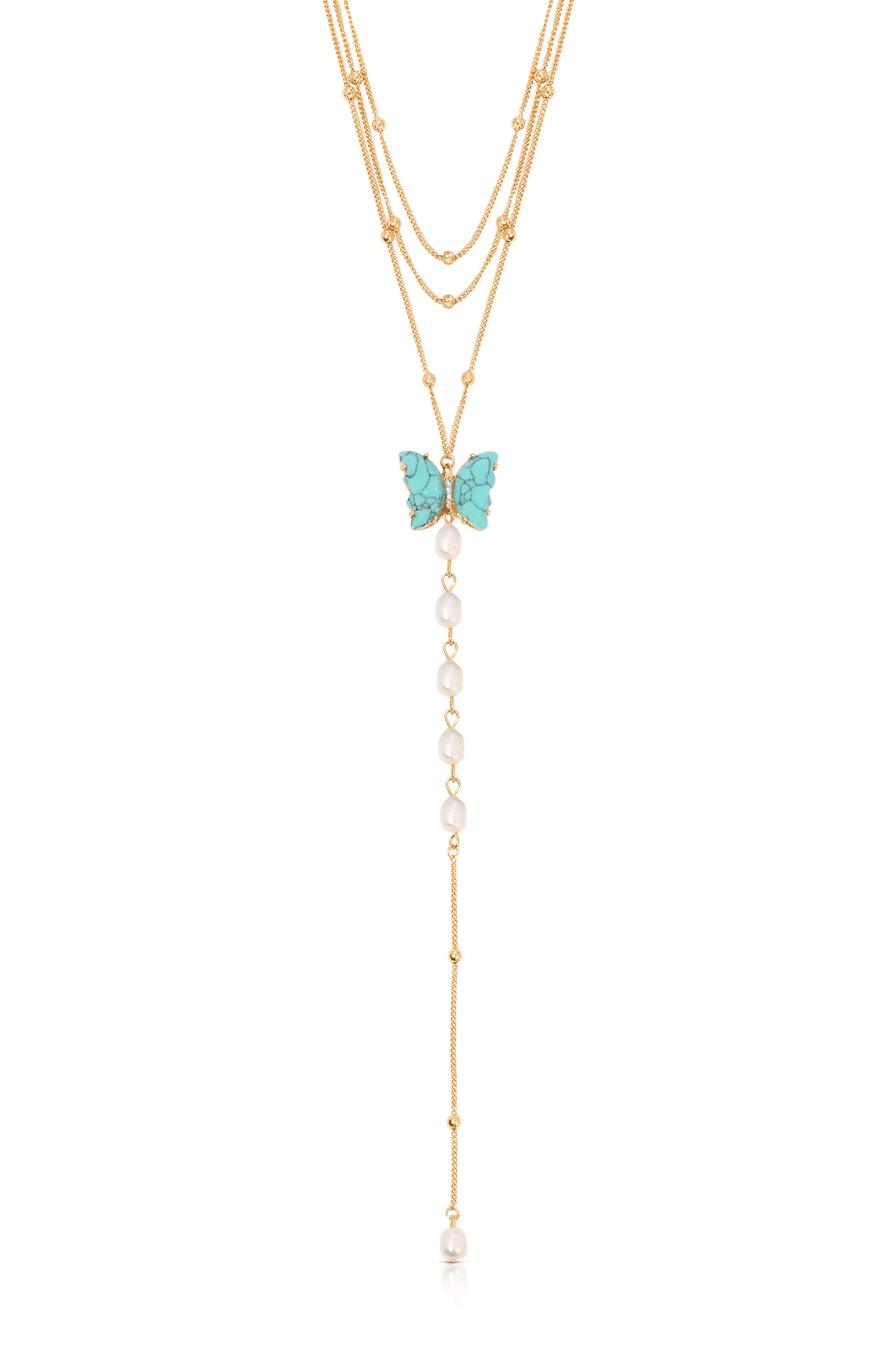 18k Gold Plated, Reconstituted Turquoise, Freshwater Pearl