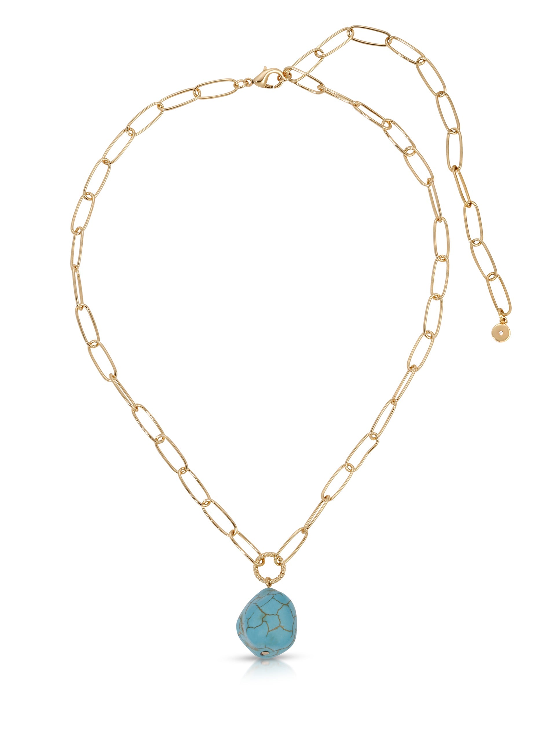 18k Gold Plated, Brass, Steel, Cubic Zirconia, Reconstituted Turquoise